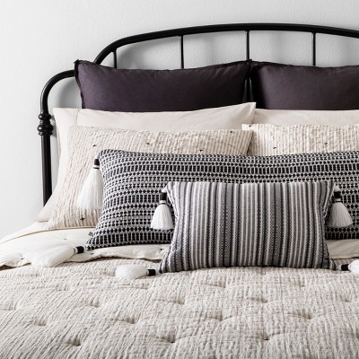 Create your own retreat with a mix of bedding in soft textures and simple patterns.